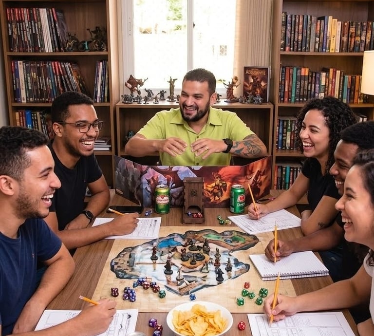 Nas sessões com RPG acontece o treino prático de empatia, comunicação assertiva e resolução de conflitos em cenários controlados. Ao enfrentar desafios em grupo, o praticante desenvolve colaboração e flexibilidade cognitiva de forma natural. É uma ferramenta poderosa para transformar interações complexas em aprendizado leve, permitindo que as habilidades conquistadas no "jogo" sejam transportadas com mais confiança para a vida real.